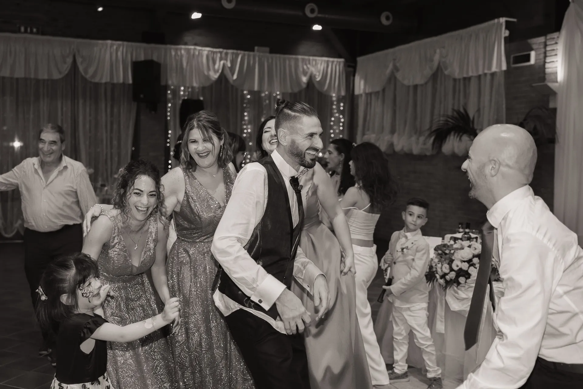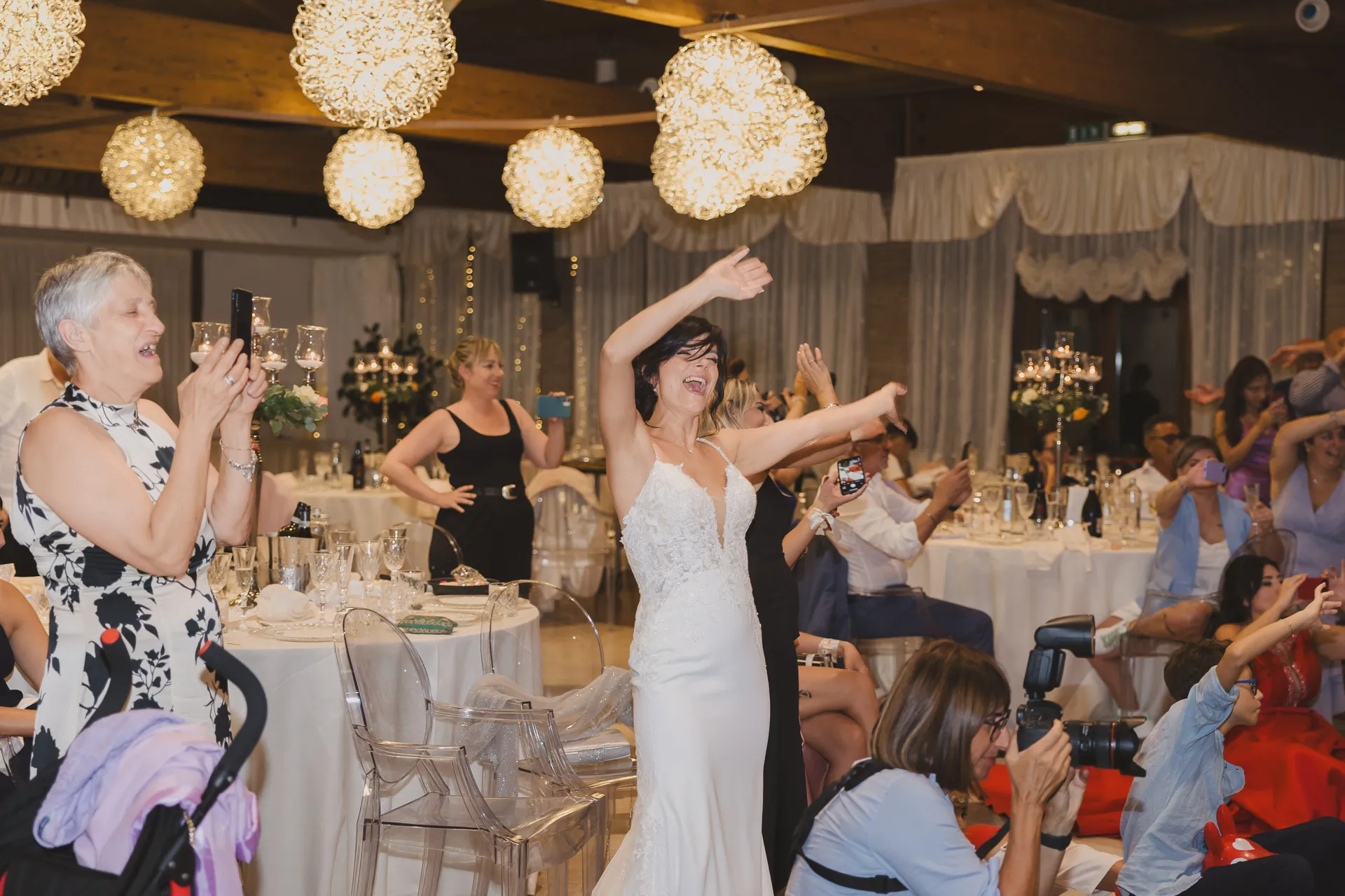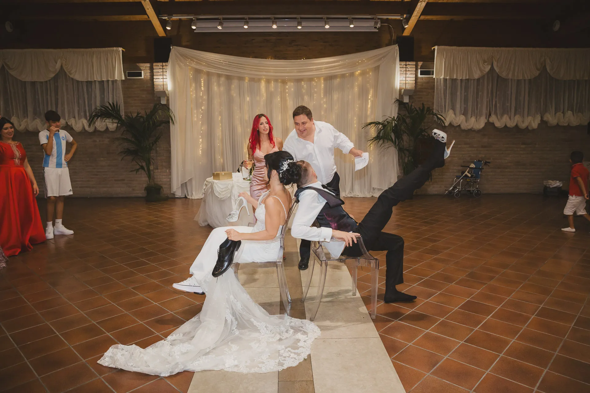 La festa è proseguita con brindisi, divertimento e tantissimi giochi che hanno coinvolto gli sposi e gli invitati, regalando risate e momenti indimenticabili.