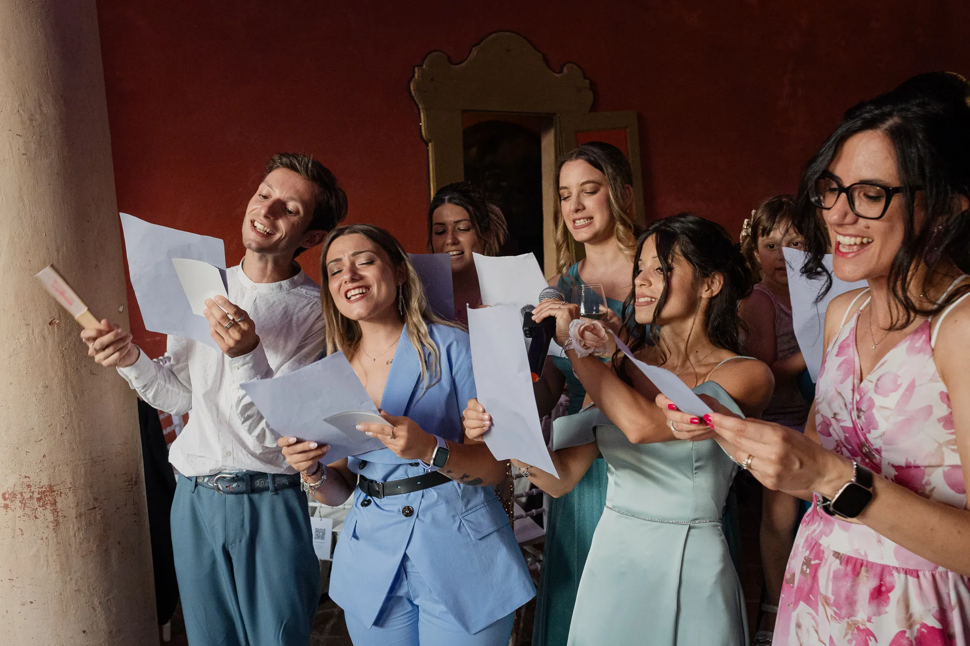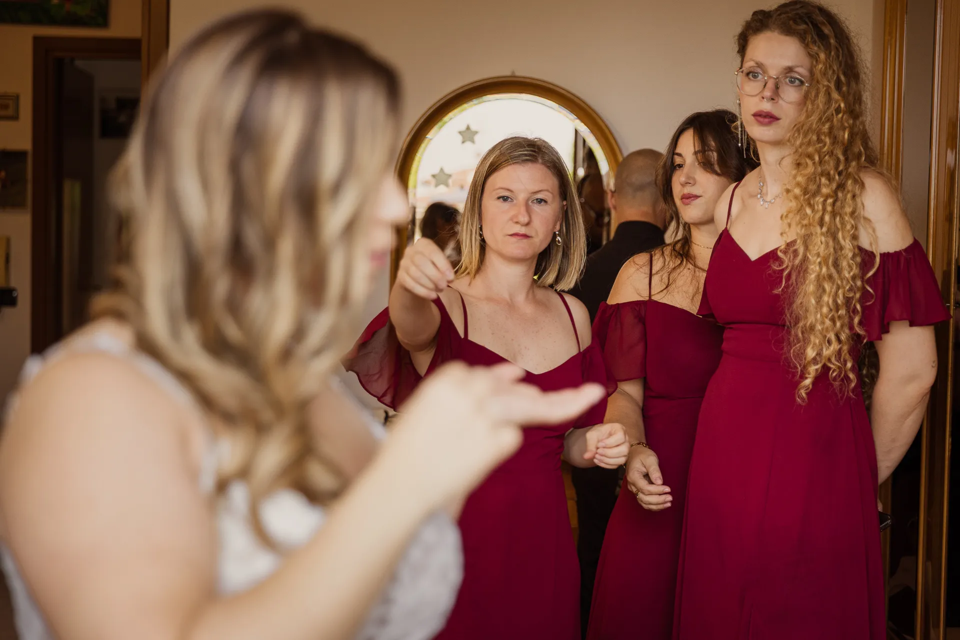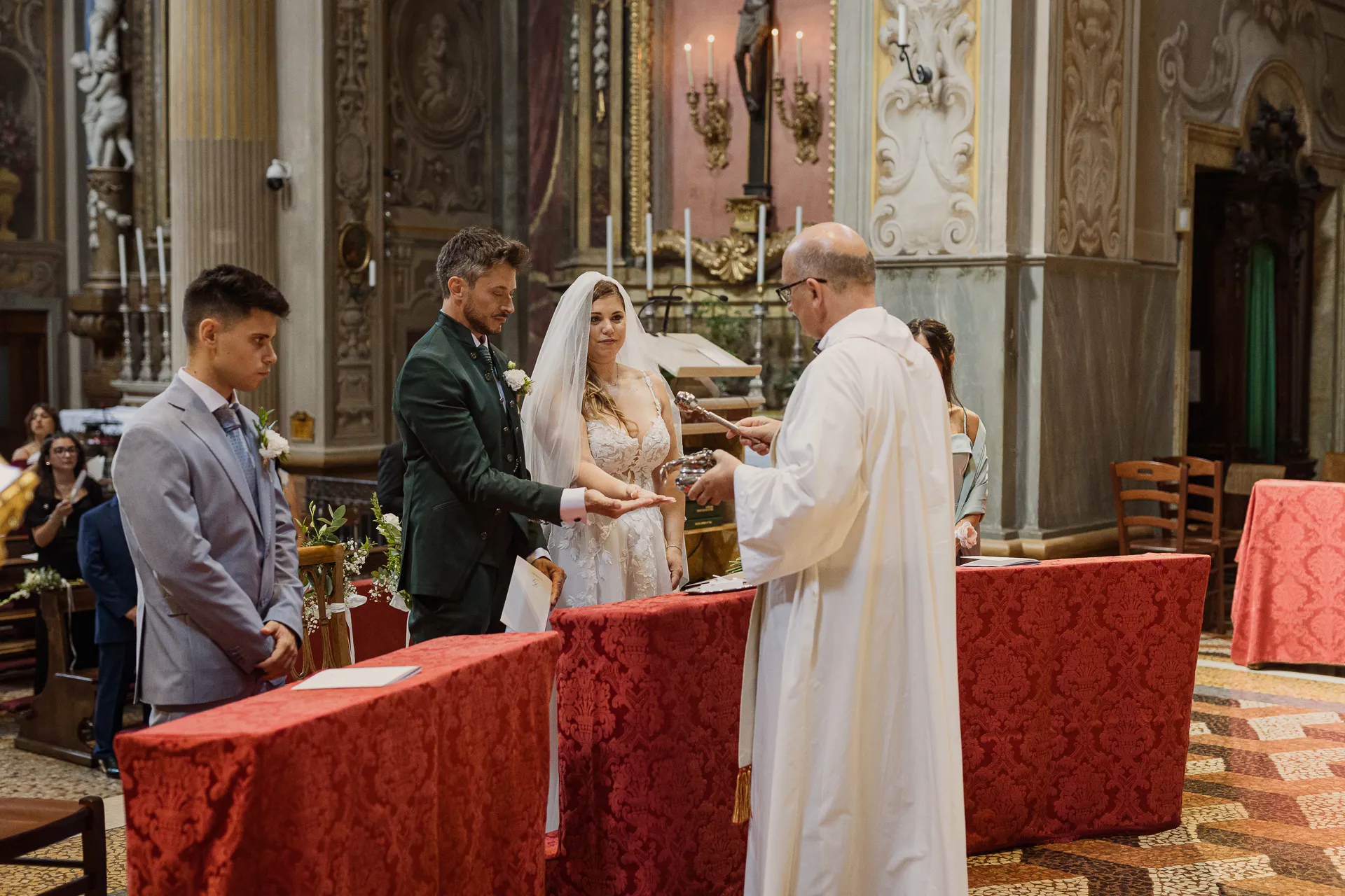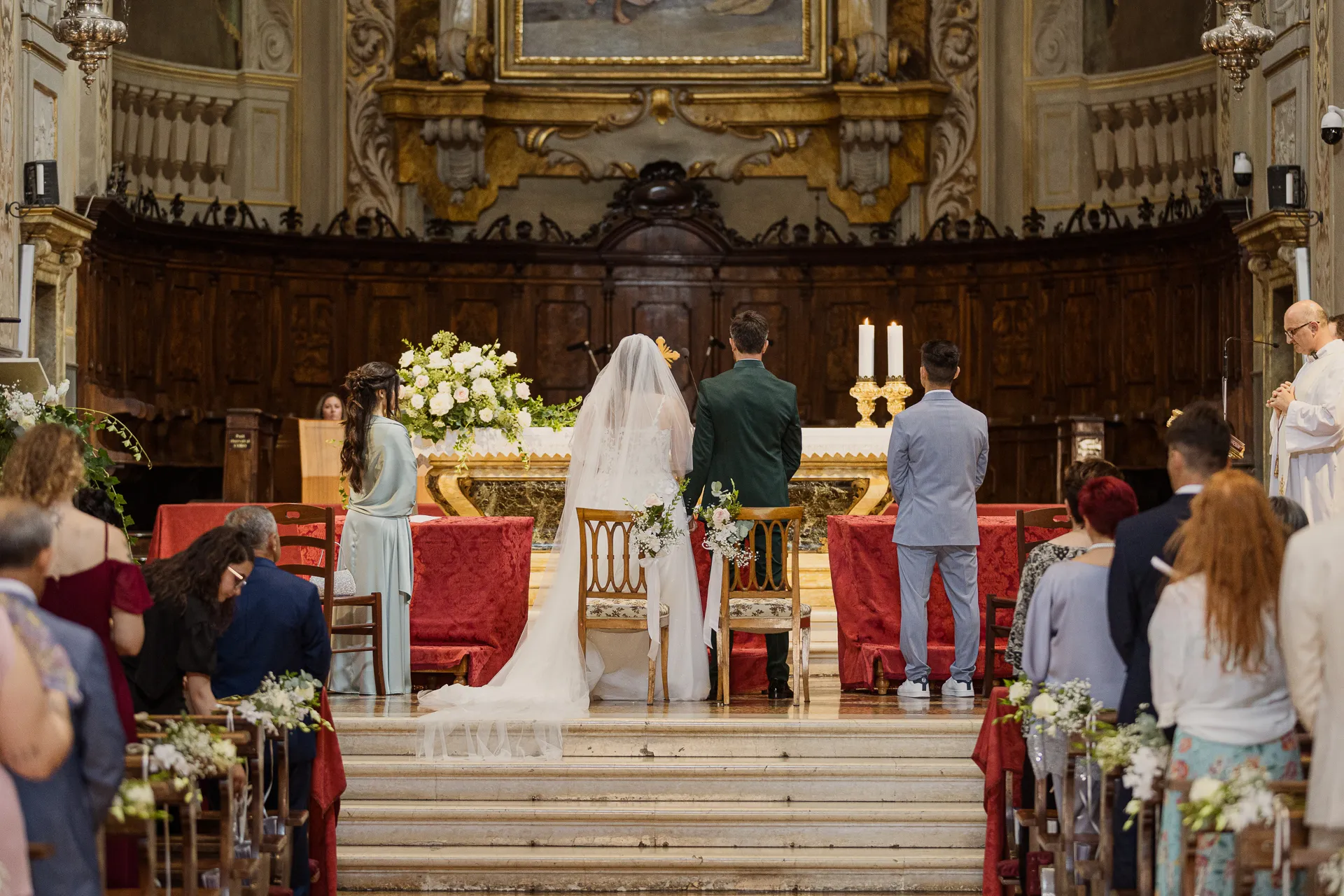 La giornata delle nozze è iniziata con i preparativi degli sposi in luoghi separati, ciascuno circondato dall'affetto di familiari e amici più stretti, nell'emozionante attesa di incontrarsi all'altare della chiesa.